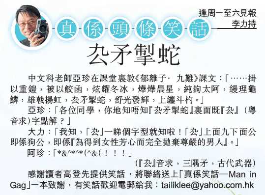 此篇笑話刊於2013年5月8日《頭條日報》。