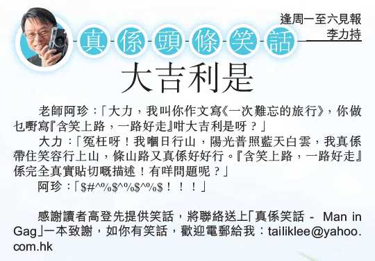 此篇笑話刊於2013年5月22日《頭條日報》。